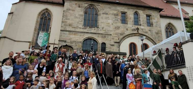 Auch wenn der Sommer am Freitag eine kleine Pause einlegte, der Stimmung beim Altstadtfest tat dies keinen Abbruch. Traditionell läutete die Bergknappenkapelle mit einem Standkonzert die dreitägigen Festtage ein. Pünktlich um 18 Uhr setzte sich der Festzug mit den Ehrengästen, Stiber-Fähnlein, Gruppen aus dem Mittelalterlager und dem Kindergarten St. Marien an der Spitze in Bewegung. Erster Bürgermeister Michael Göth freute sich, dass es nun endlich wieder losgehen könne und dankte allen Verantwortlichen. Die Menschen sollten nun wieder für ein Wochenende ihr Wohnzimmer gegen die Festmeile tauschen. Er begrüßte eine stattliche Abordnung aus der Partnerstadt Eschweiler. Sepp Lösch alias Albrecht Stiber sprach den Prolog, bevor Stiber-Vorsitzende Tanja Weiß noch alle historischen Gruppen einzeln begrüßte. Das Altstadtfest geht natürlich Samstag und Sonntag weiter. Und die Wetterfrösche prophezeien bestes Feierwetter!