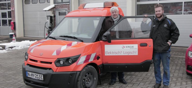 KFZ-Werkstattmeister Fabian Gertler bedankte sich bei Rainer Gründel, Ansprechpartner für Kommunale Kunden bei der N-Ergie AG für die Zurverfügungstellung des Streetscooters.