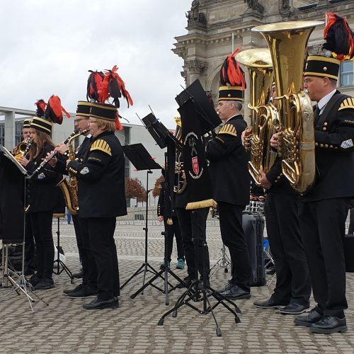 Es war der Höhepunkt der dreitägigen Berlinreise: Die Bergknappenkapelle der Stadt Sulzbach-Rosenberg hatte die Gelegenheit, am Sonntag, dem 27.10.2019 ein Standkonzert vor dem Berliner Reichstag zu spielen.