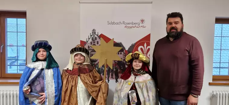 Unter dem Motto „Erhebt eure Stimme – Sternsingen für Kinderrechte“ bringen die Sternsinger traditionell rund um den Dreikönigstag den Segen in alle Häuser. Eine Abordnung der Pfarrei St. Marien besuchte unter andere das Rathaus, wo Erster Bürgermeister Stefan Frank sie empfing und die Segenswünsche für die Stadt entgegennahm.