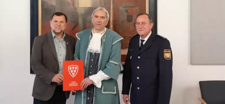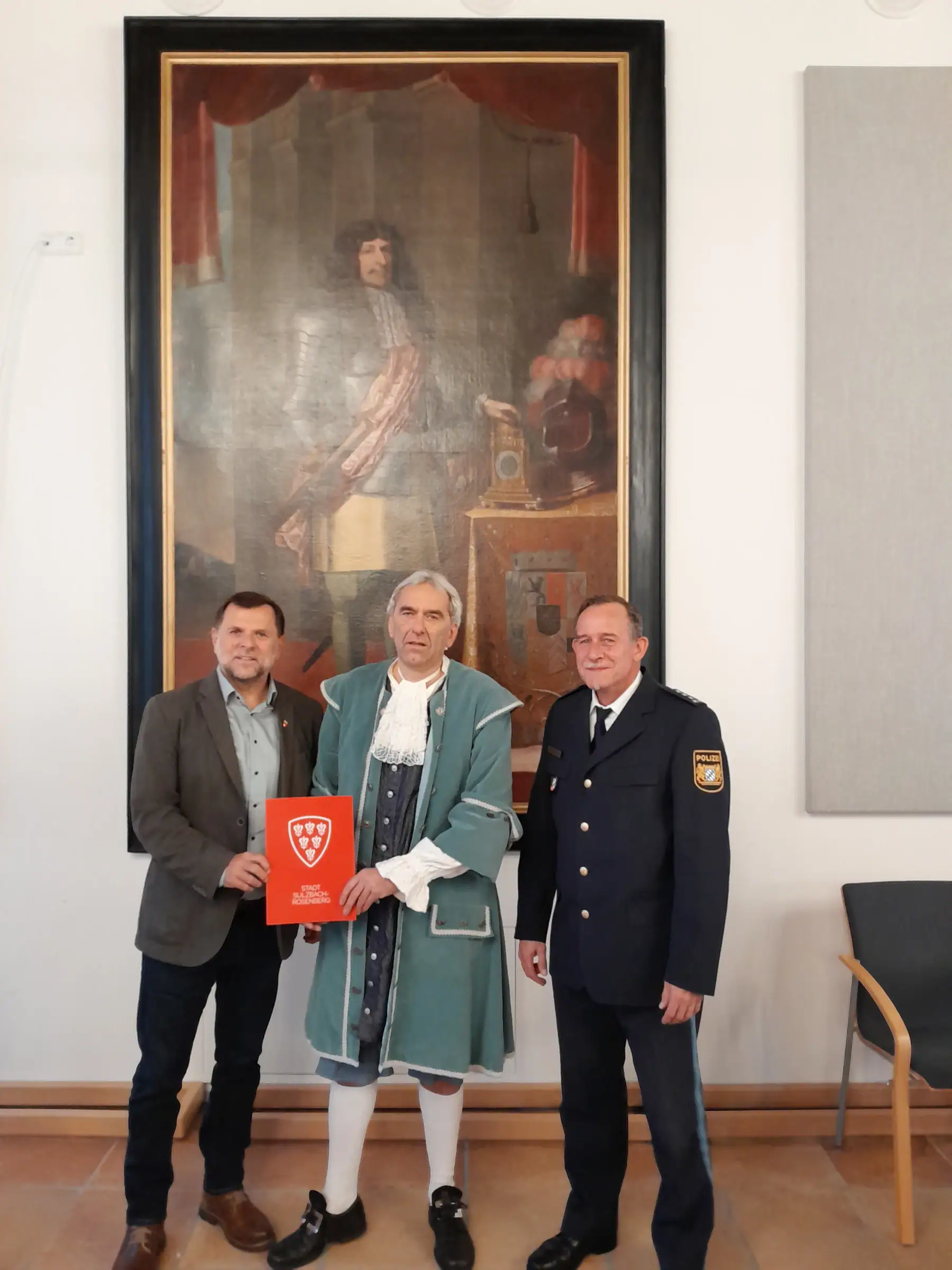 Herr Erster Polizeihauptkommissar Kernebeck, der immer unkompliziert geholfen hat, wenn Herr Haller wiederholt besondere Stadtführungen im Öffentlichen Raum durchgeführt hat, ließ es sich ebenfalls nicht nehmen, an der Ehrung teilzunehmen.