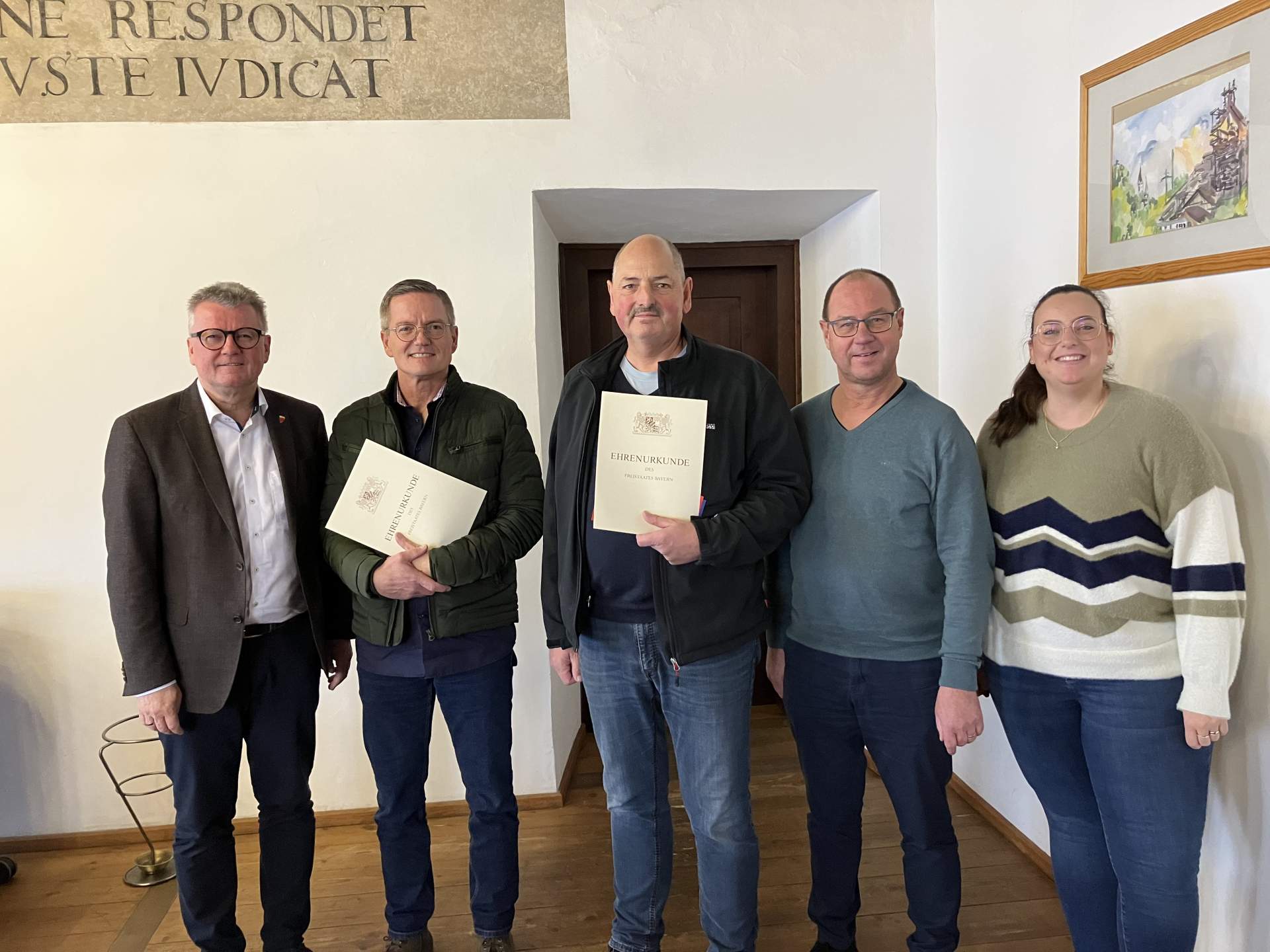 v.l.: 1. Bürgermeister Göth, Gerhard Stepper, Michael Reinhardt, Personalleiter Roland Maul und Personalrätin Marina Haberkorn