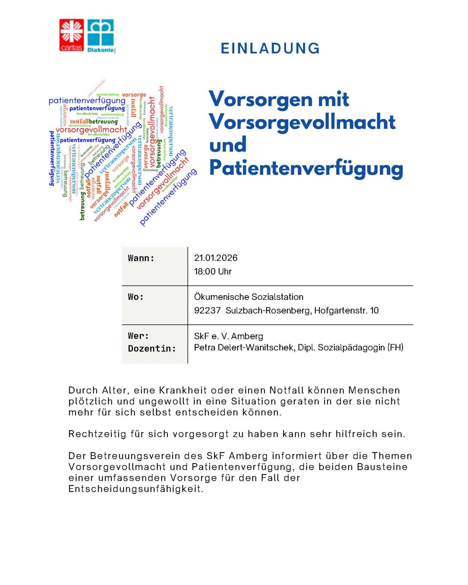 Der Betreuungsverein SkF e. V. Amberg informiert in einer Veranstaltung über beide Themen und erklärt, worauf es ankommt.