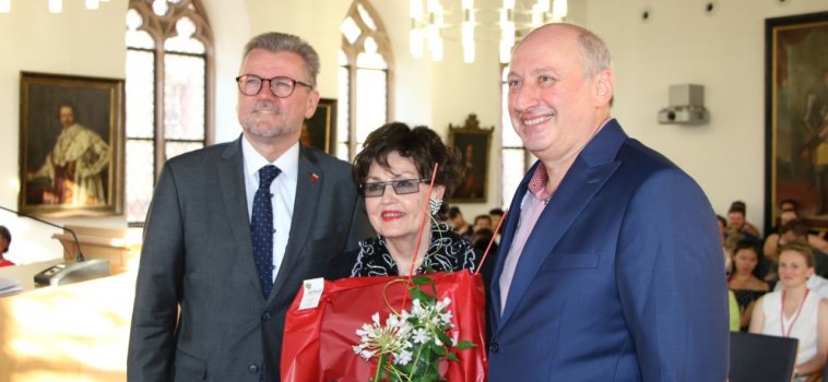 Zuvor wurde die internationalen Gäste bereits stilecht am Rathausportal durch eine Abordnung des Stiber-Fähnleins begrüßt. Die musikalische Unterhaltung im Großen Saal übernahmen Konstantin Schunk an der Violine mit seiner Mutter Katrin Arzberger am Flügel.