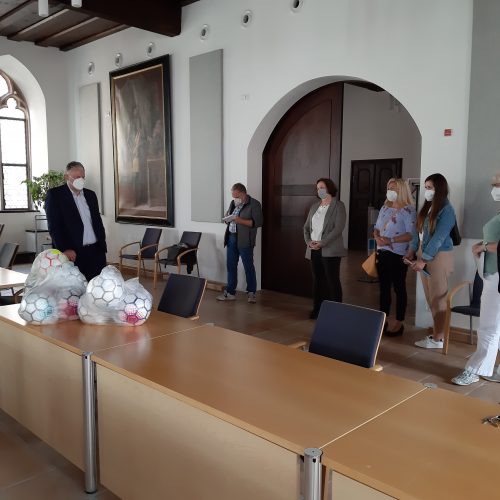 Die Sulzbach-Rosenberger Schulen und Sportvereine können sich über neue Fuß- und Handbälle freuen. Und das Beste: Sie sind aus fairem Handel. Die Bälle wurden nun an die Schulleiter übergeben. Diese sicherten zu, dass man über die Bälle die Schülerinnen und Schüler für das Thema Fairtrade sensibilisieren wolle. Erster Bürgermeister Michael Göth erklärte, dass die Stadt sich der Initiative der Metropolregion gerne angeschlossen habe. Seither werde versucht bei der Beschaffung auf Produkte aus fairem Handel zu achten. Kaffee oder Papier wurden schon geordert. Außerdem gebe es in der Stadt schon lange den Eine-Welt-Laden. Das Landratsamt, dessen Regionalmanagerin die ganze Bälle-Aktion organisiert, hat das Thema auch im Leitbild. Landrat Richard Reisinger versicherte, dass man nach und nach entsprechende Maßnahmen umsetzen werde. Die Bälle stammen aus Pakistan. Am wichtigsten ist, dass die Betriebe ihre Mitarbeiter fair bezahlen, gute Arbeitsbedingungen herrschen und Kinderarbeit verboten ist. Die Fabrik ist fairtrade-zertifiziert und wird regelmäßig überprüft. Auch die gesamte Lieferkette ist zertifiziert.