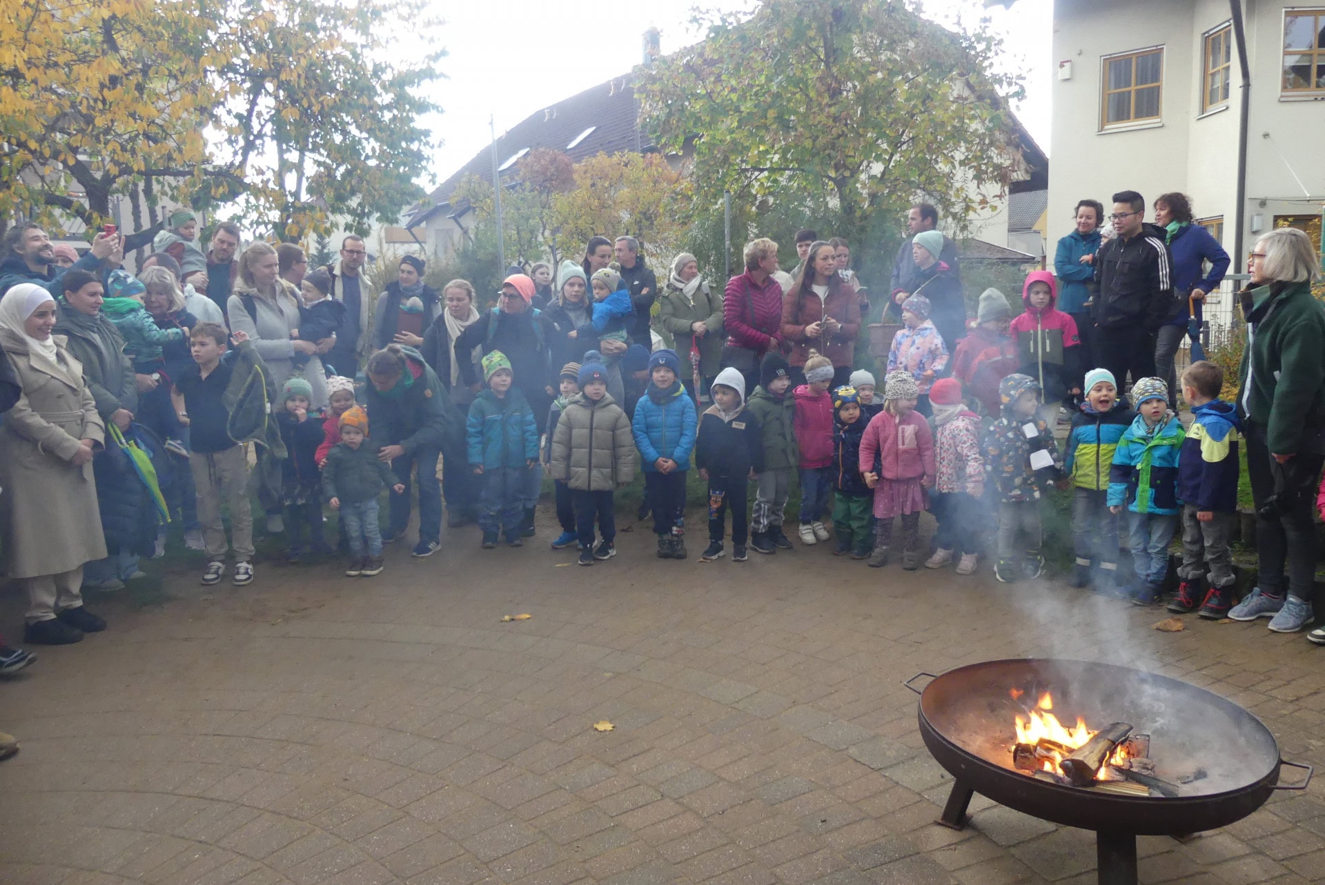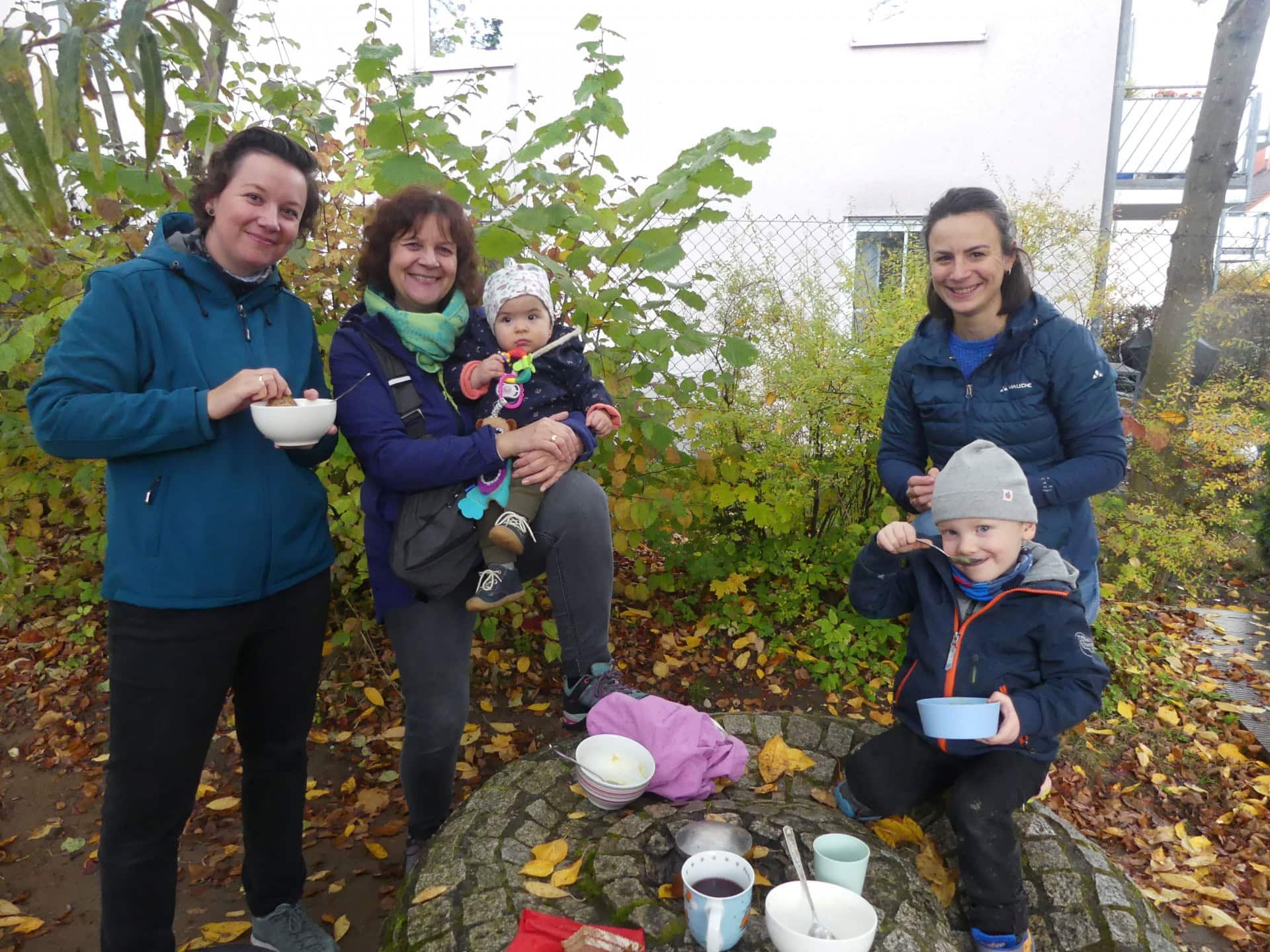 Nachdem alle angekommen waren, haben wir uns um unsere Feuerschale versammelt. Die Kinder haben passend zum Herbst ein lustiges Kürbislied einstudiert, das sie dann gemeinsam gesungen haben. Voller Stolz haben die Eltern und Großeltern gespannt gelauscht. Bei leckerer Kürbissuppe und warmen Kinderpunsch haben wir es uns anschließend gemütlich gemacht.