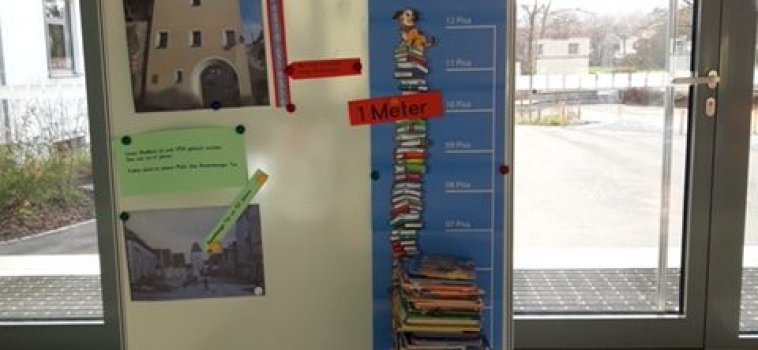 Die Schülerinnen und Schüler, haben für diese Aktion den Stadtturm in der Rosenberger Straße ausgewählt. Ziel ist es, so viele Bücher zu lesen, dass sie übereinandergestapelt einen Turm von 21m 77cm ergeben würden. So hoch ist nämlich der Stadtturm.
