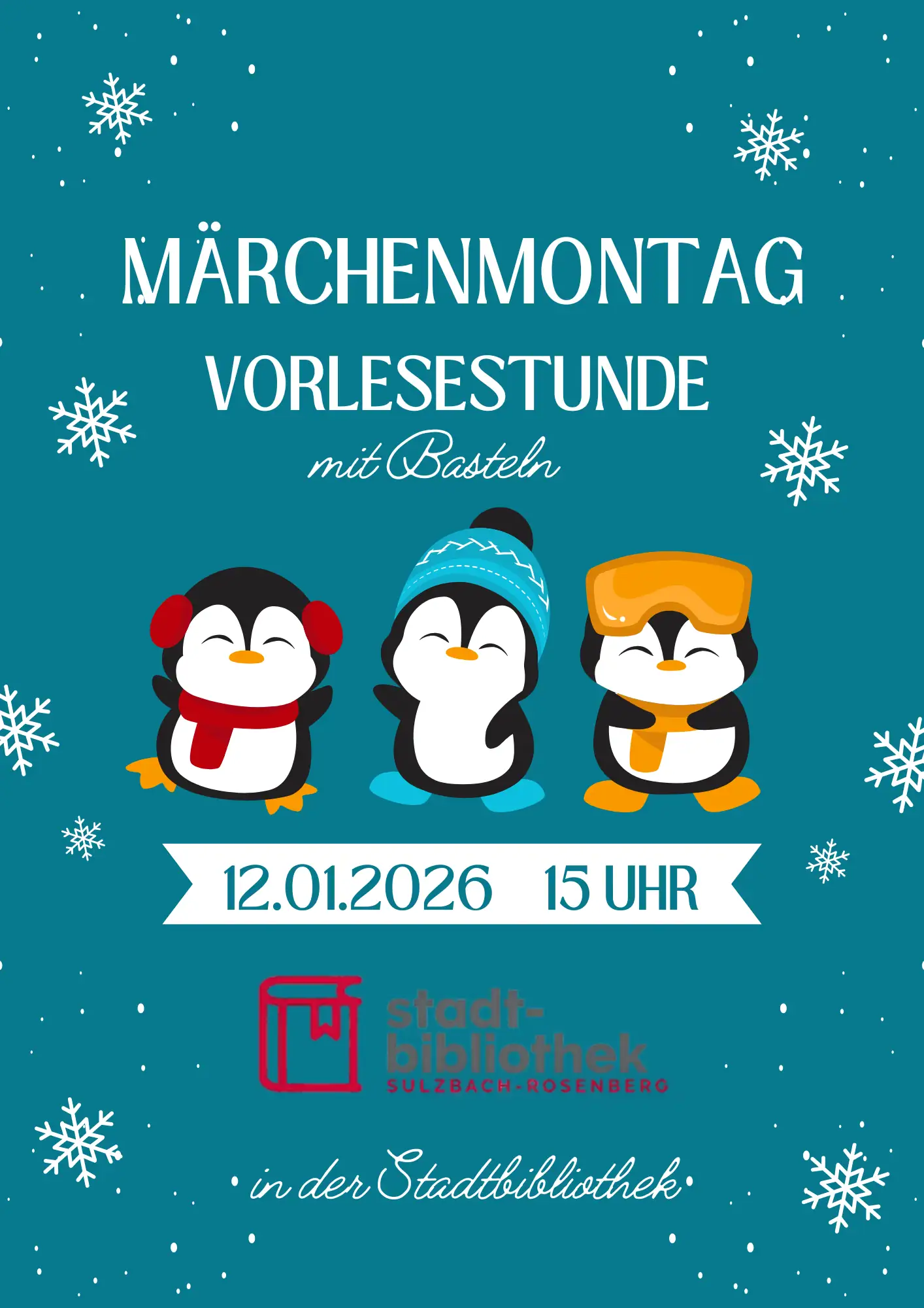Am 12.01.2026 um 15.00 Uhr findet in der Stadtbibliothek der Märchenmontag mit Basteln statt.
