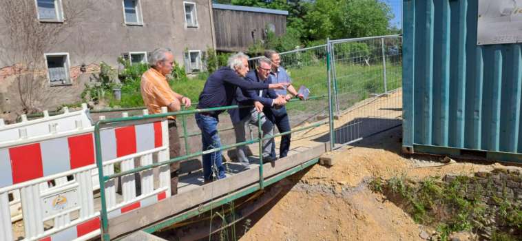 Roland Greipel vom städtischen Baureferat sieht den Abschluss der Arbeiten Ende August, wenn das noch fehlende Material nun rasch geliefert wird. Bei einer Besichtigung informierte sich Erster Bürgermeister Michael Göth über den aktuellen Stand. Dabei war es ihm ein Anliegen, den Anwohnern für ihre Geduld zu danken. Schließlich sorgt die komplette Sperrung der Verbindung Hammerphilippsburg – Fürstenmühlstraße für Einschränkungen.