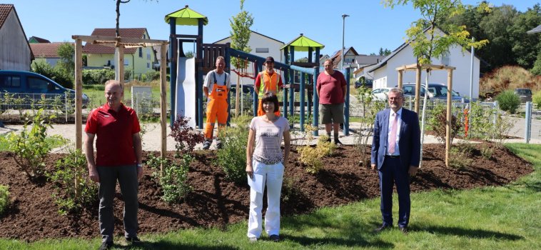 Der neue Spielplatz in Kropfersricht ist fertiggestellt. Offiziell eröffnet wird er zwar erst ab 03.08.2020, bei einem Ortstermin freute sich Erster Bürgermeister Michael Göth gemeinsam mit der planenden Architektin Christine Schaller-Kokesch vom städtischen Baureferat sowie dem stätischen Bauhof und der Stadtgärtnerei über den tollen neuen Spielplatz.