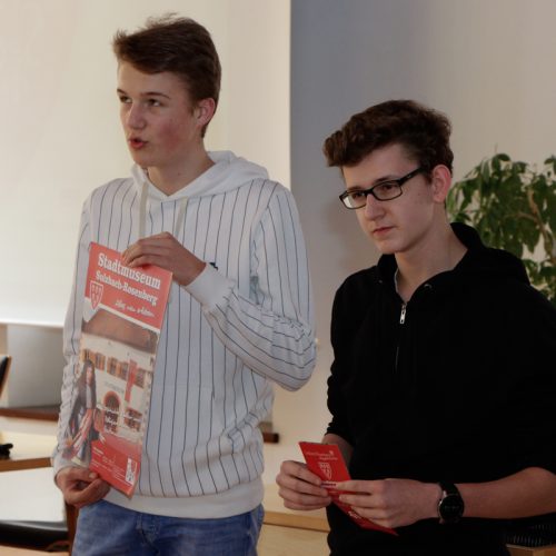 Jeder Schüler an einem bayerischen Gymnasium muss vor dem Eintritt in die gymnasiale Oberstufe je ein W-Seminar und ein P-Seminar aus dem Angebot der Schule wählen. Bei einer Präsentation im großen Rathaussaal stellten die Schüler nun ihre Ergebnisse vor und überreichten diese dem Stadtmuseum.