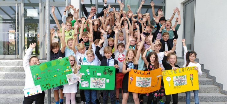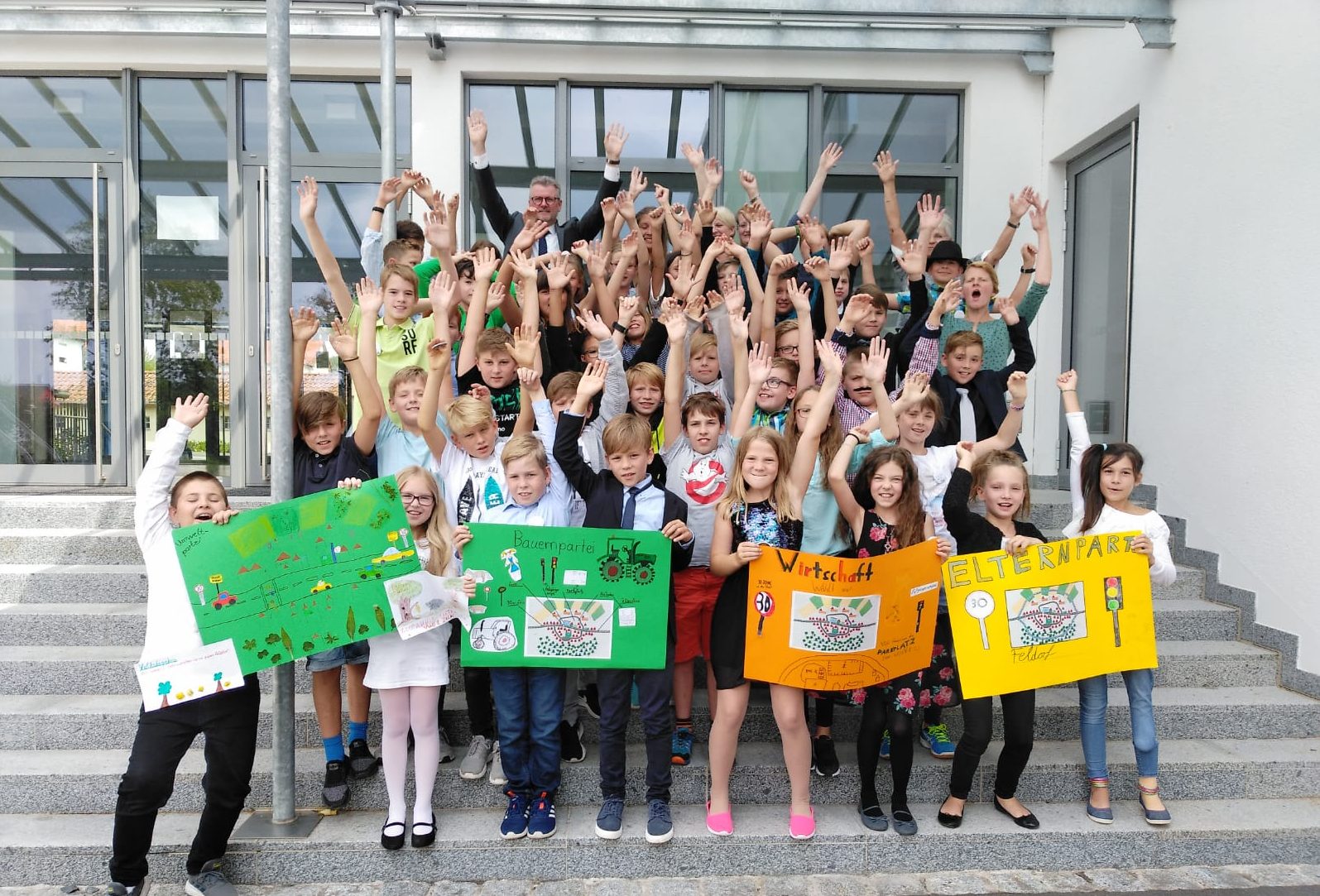 Der krönende Abschluss des gelungenen Planspiels war der Besuch den Erstem Bürgermeister Michael Göth. Natürlich hatten die Kinder viele Fragen vorbereitet, die sie dem Ehrengast stellten. Am Schluss war für alle klar: So macht Demokratie Spaß!