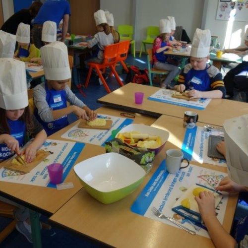 Das Projekt für Grundschüler macht Appetit auf Wissen. „Mehr bewegen – besser essen“ gibt es jetzt bereits im sechsten Jahr und ist ein an Grundschulen im gesamten Bundesgebiet erfolgreich etabliertes Lernformat. Insgesamt haben bereits über 48.800 Schüler aus 3. und 4. Klassen daran teilgenommen, allein im vergangenen Schuljahr waren es über 14.400 während 700 Projekttagen. Altersgerecht wechseln sich dabei Theorie- und Praxismodule ab: Die Ernährungstheorie wird ergänzt durch einen Sinnesparcours und gemeinsames Kochen. Bei abwechslungsreichen Lauf- und Geschicklichkeitsspielen wird den Schülern die Bedeutung von „Bewegung“ für Gesundheit und Wohlbefinden vermittelt. Der Baustein „Verantwortung“ wird anhand der Thematik „nachhaltige Fischerei“ besprochen und die erarbeiteten Denkanstöße gemeinsam reflektiert.