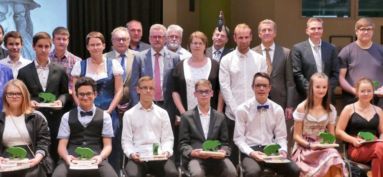 Unter dem Programmpunkt „Herausragendes“ wurden anschließend von Schulleiter Peter Danninger die dreizehn Abschlussbesten geehrt. Sie erhielten neben ihrem Zeugnis auch einen „Kröti“, den Oskar der Schule. Nina Zahn bekam einen Ehrenpreis für besondere Leistungen um ein gutes Schulklima. Anschließend verteilten die Klassenlehrer die Zeugnisse an alle Entlassschüler.