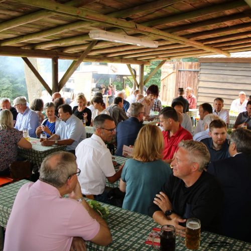 Erster Bürgermeister Michael Göth ging dabei in seiner kurzen Ansprache natürlich auch kurz auf die beiden ausgefallenen Annabergfeste während der Pandemiejahre ein und begrüßte daher in diesem Jahr viele Vertreter der Unternehmen und Vereine, der Kirchen und Verwaltung, der Polizei, Schulen und Presse und viele mehr umso herzlicher. Besonders freute sich Göth, dass auch der Regierungspräsident der Oberpfalz, Herr Walter Jonas, den Weg auf den Annaberg auf sich nahm. Bei Schmankerln der Metzgerei Lotter wurde im Freisitz der Brauerei Sperber so manch anregendes Gespräch geführt.