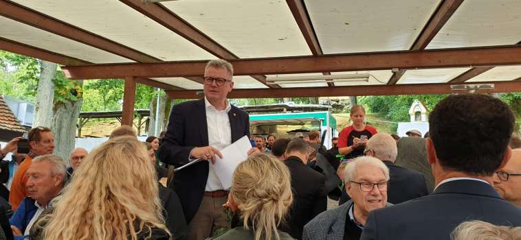 Erster Bürgermeister Michael Göth freute sich in diesem Jahr, dass so viele Vertreter der Unternehmen und Vereine, der Kirchen und Verwaltung, der Polizei, Schulen und der Presse seiner Einladung gefolgt waren. Seine kurze Ansprache handelte in diesem Jahr von der historischen Entwicklung des Annabergfestes. Dies beinhaltete auch einige kurzweilige Anekdoten aus dem Bergfestgeschehen der letzten beiden Jahrhunderte.