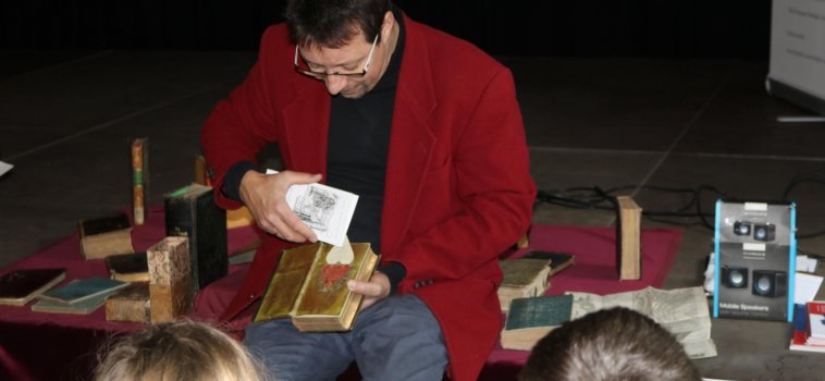 Höhepunkt für viele Kinder war aber schließlich, als Dr. Markus Lommer unter großem Interesse noch einige der ältesten und kostbarsten Bücher des Seidel-Nachlasses zeigte.