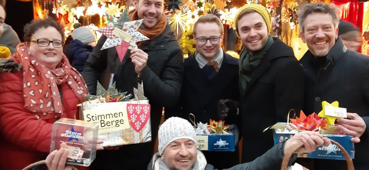 Die „Stimmen der Berge“ sammelten zusammen mit dem Radiosender Bayern Plus Spenden auf dem Nürnberger Christkindlesmarkt. Dafür haben sich die Sänger eine besondere Aktion einfallen lassen: Sie haben sich nach einem Konzert Zeit genommen und mit Fans aus ganz Deutschland Papiersterne gebastelt. Mit viel Liebe wurde gemeinsam stundenlang gefaltet, geschnitten und verziert. Dabei waren auch Fans aus der Herzogstadt.