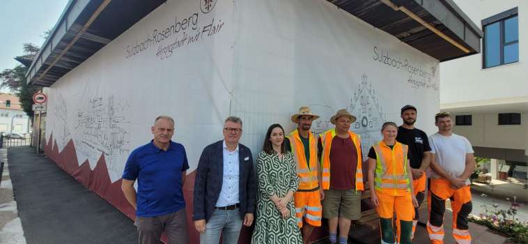 In Abstimmung mit dem Eigentümer gestaltete der städtische Bauhof und die Stadtgärtnerei das Umfeld neu. Die Blumenanlagen strahlen, trotz sommerlicher Temperaturen, frisch und ordentlich. Der Gehweg zur Hauptstraße hin wurde neu geteert, das Geländer gerichtet. Sobald die Bauarbeiten am Storg-Gebäude final abgeschlossen sind, wird die Süd-Seite ebenfalls mit einem Transparent im gleichen Stil verhüllt.