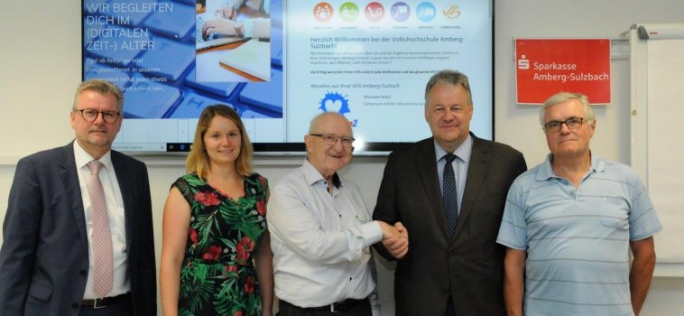 Dem Förderverein der Volkshochschule Amberg-Sulzbach e.V. wurde nun aus Verfügungsmitteln der Sparkasse Amberg-Sulzbach von Erstem Bürgermeister Michael Göth eine Spende zur Anschaffung eines Monitors mit 80 Zoll Bildschirmgröße mit eingebautem PC für die Videobearbeitung überreicht.