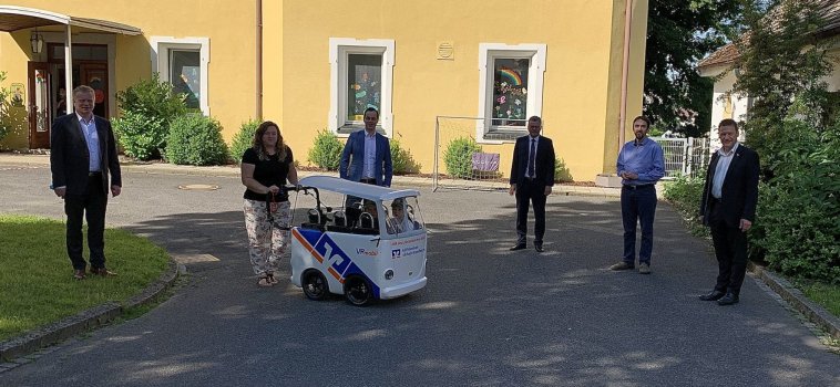 Die Kinder, die Einrichtungsleiterin und die Erzieherinnen freuten sich sehr über ihr neues Gefährt. Der vr mobil Kinderbus hat einen Elektro-Antrieb, Platz für 6 Kinder und lässt sich, auch voll beladen, im wahrsten Sinne des Wortes kinderleicht schieben. Die Raiffeisenbank Sulzbach-Rosenberg eG und die Stadt Sulzbach-Rosenberg wünschen allzeit gute und sichere