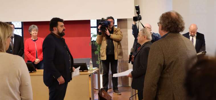 Die Formel nahm ihm das älteste Stadtratsmitglied, Altbürgermeister Gerd Geismann (SPD) ab.