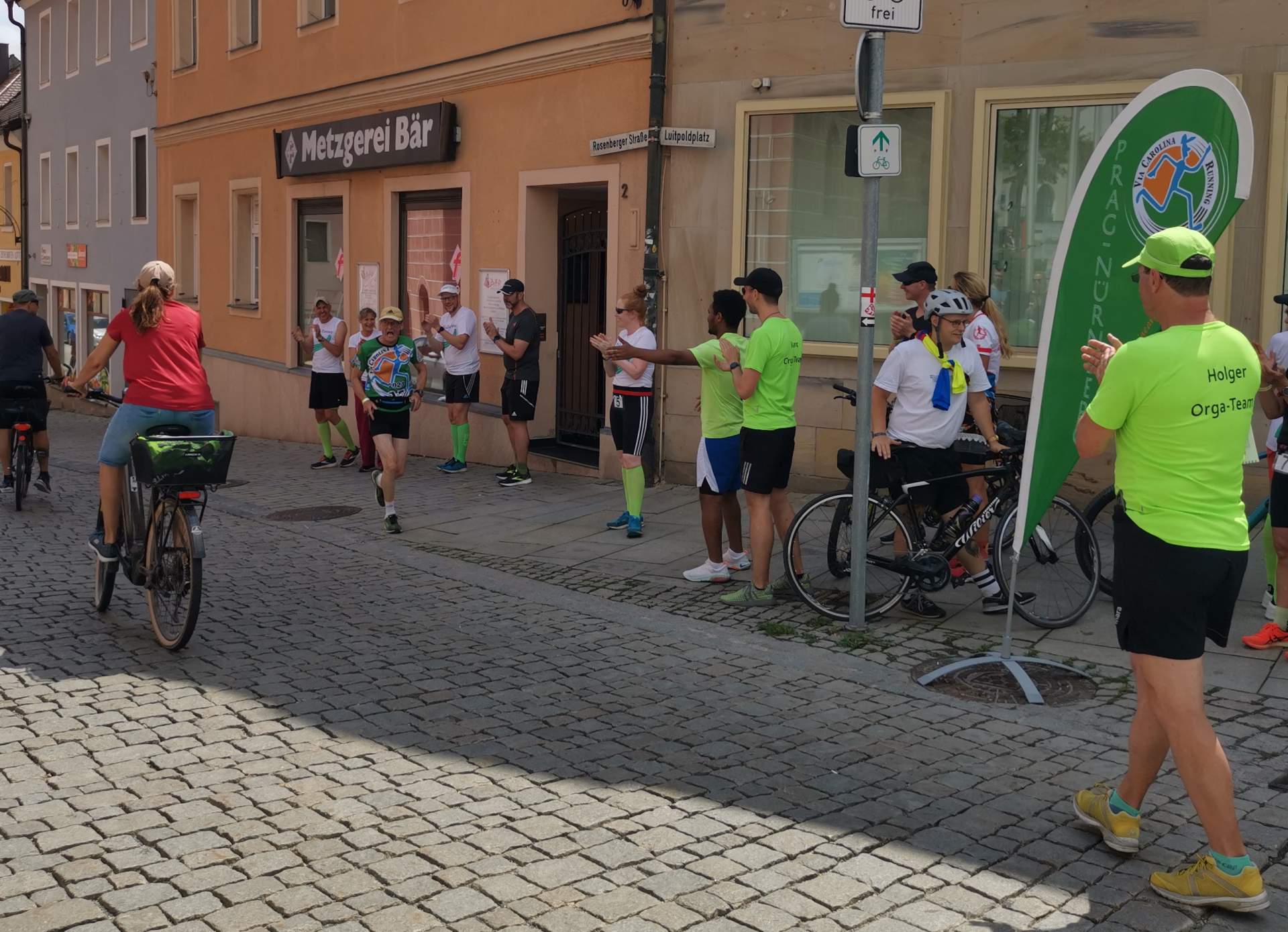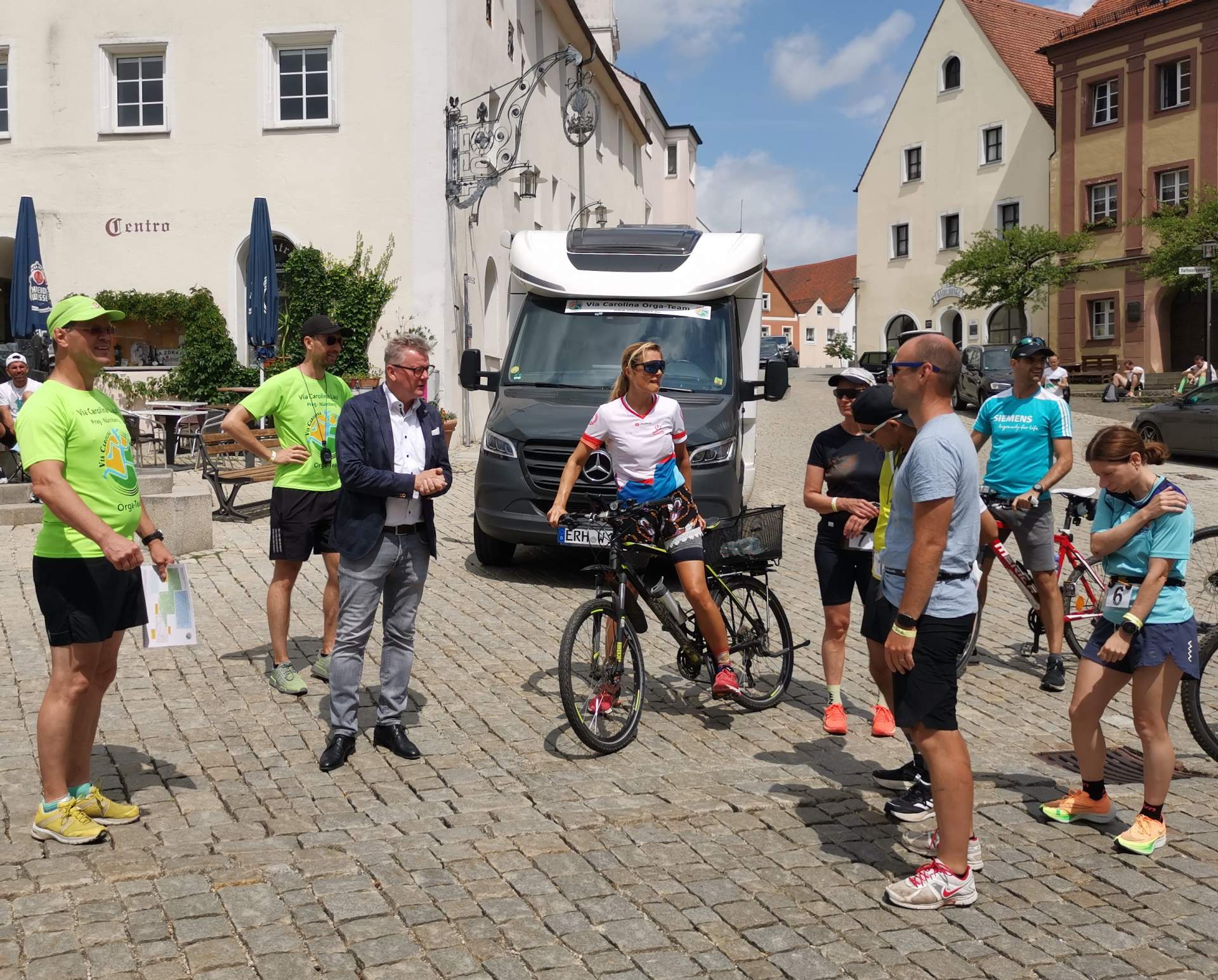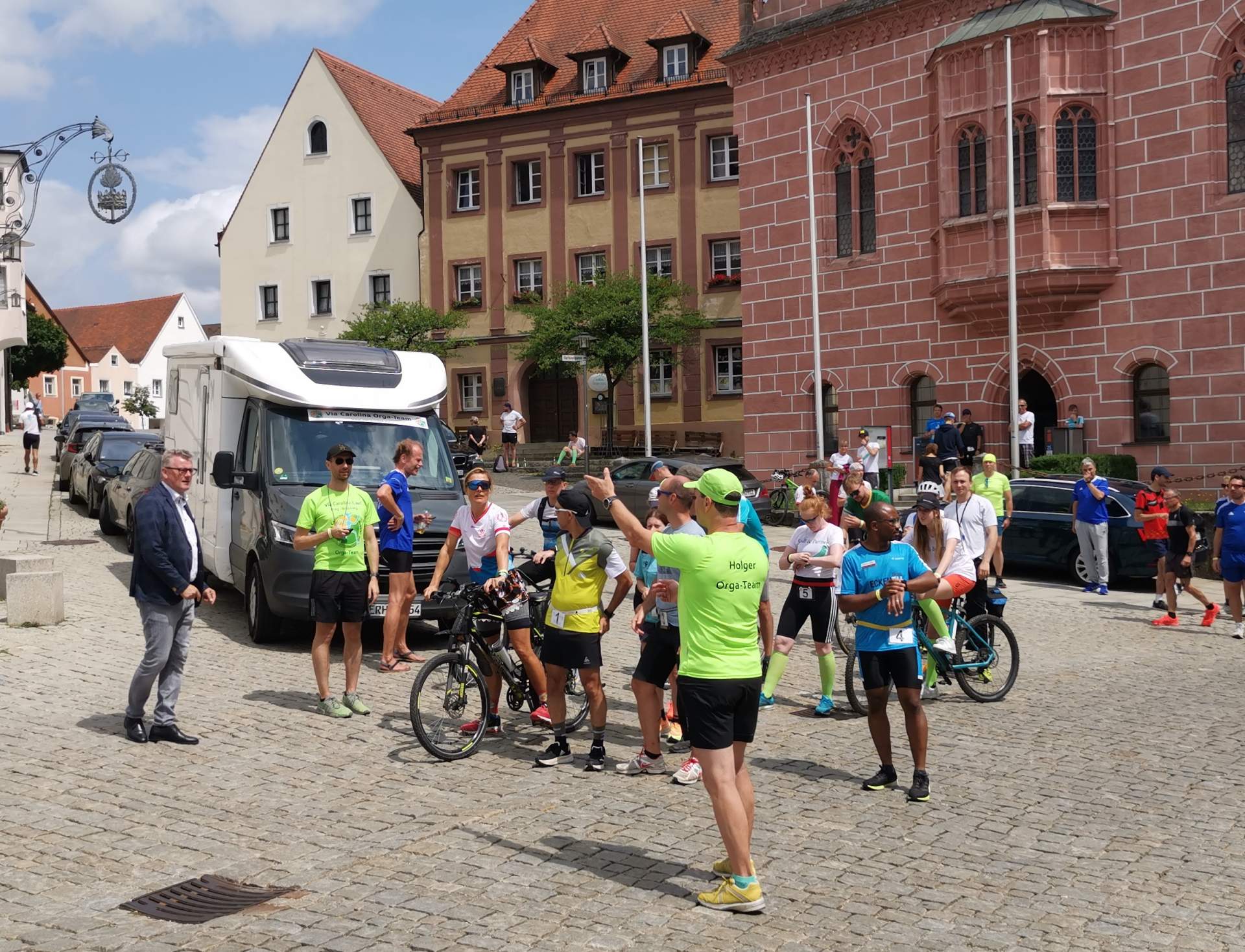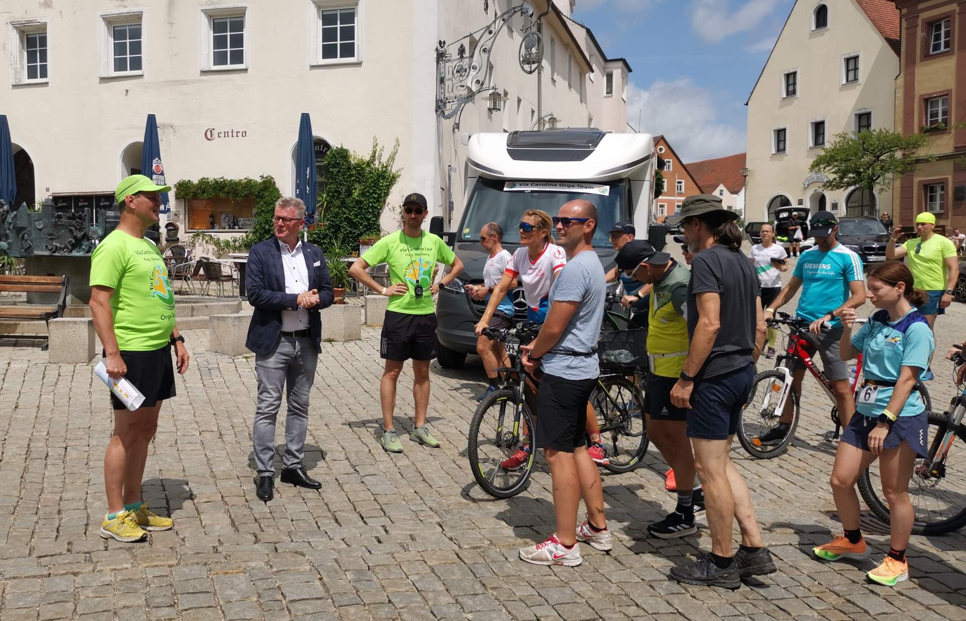 Erster Bürgermeister Michael Göth freute sich, dass der Lauf auch heuer wieder durch die Herzogstadt führte. Er ließ es sich nicht nehmen, den Trupp persönlich am Rathaus zu begrüßen. Gerne gab er das Startsignal für die neue Etappe und wünschte allen Läuferinnen und Läufern mit ihren Begleitern eine unfallfreie Ankunft in Nürnberg.