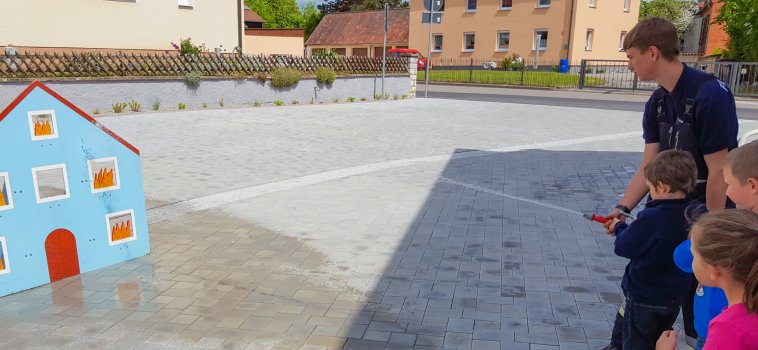 Wasser Marsch für kleine Feuerwehrler